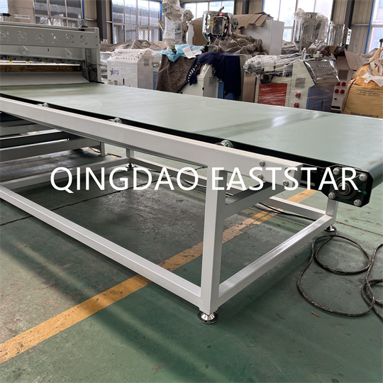 Conopeum PVC instrumenti tabulae maxime constat ex extrudero cochleae, forma scutellae, trium cylindro calendae, bracket refrigerationis, machinae globulus tractus, machina secans et machina importans.