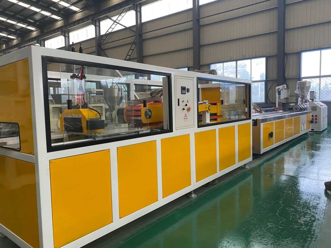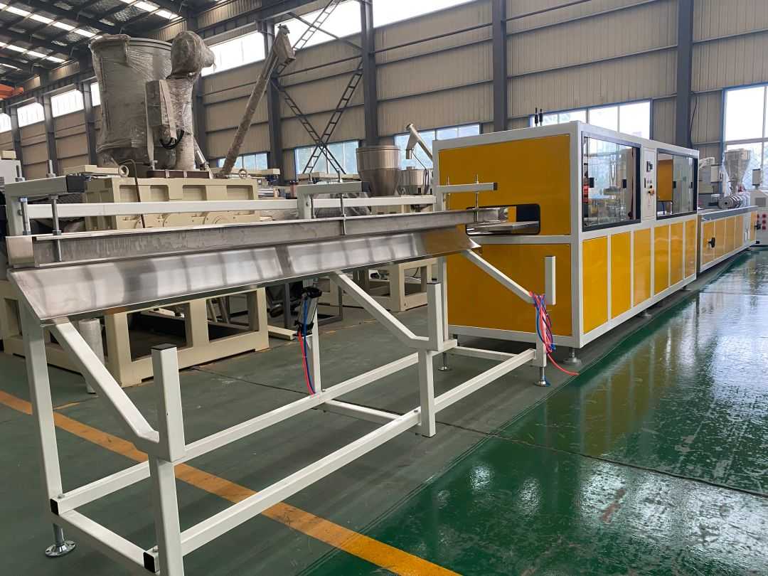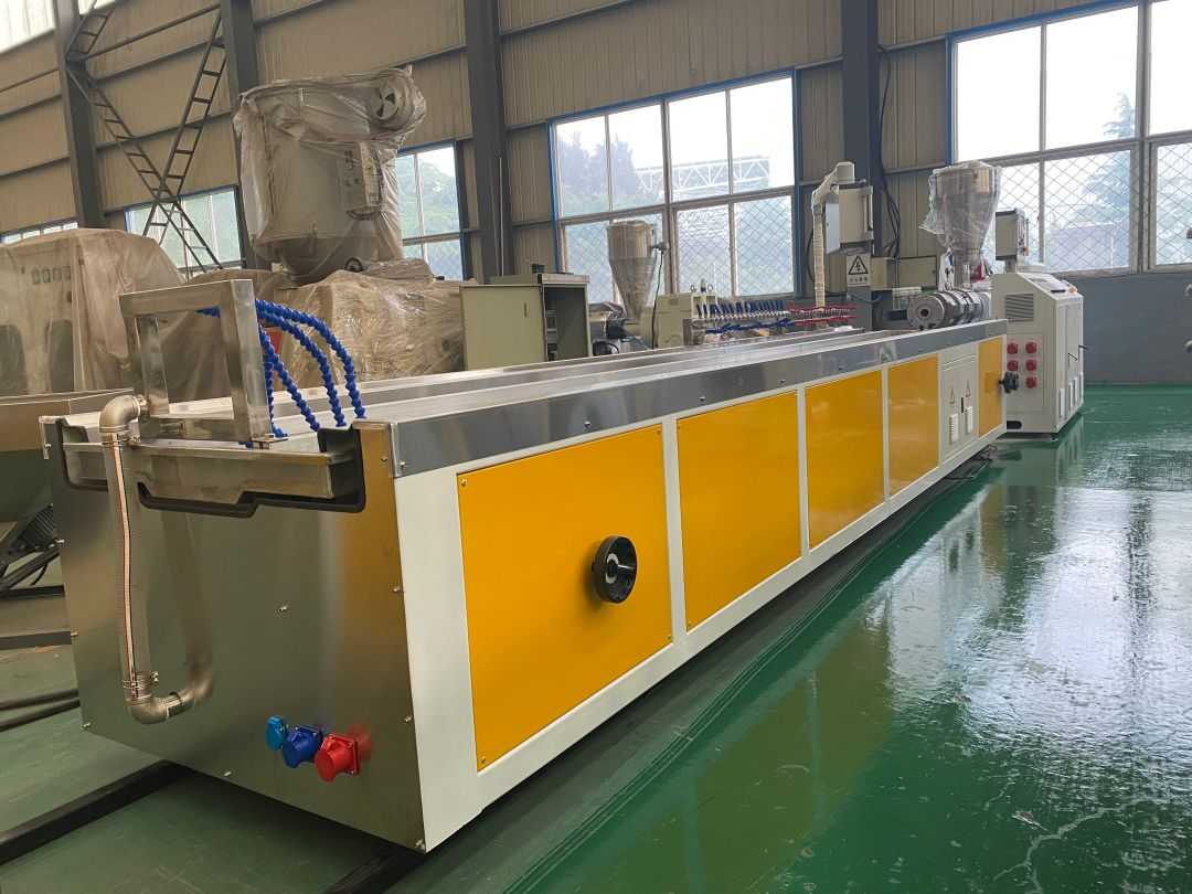 PVC lignum plastic pavimentum extrusio linea productio - Silva plastic area extrusionis productio linea utitur SJZ65/132 extrudo cochleae geminae conicae, quae specialiter adhibetur ad extrusionem, plasticizationem et figuram PE pulveris + lignorum pulveris rudis materiae. Proprietates altae output habet, effectum bonum plasticizing ac industria consummatio humilis.